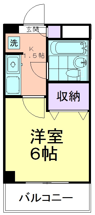 K 1.5帖 1室/洋室 6.0帖 1室 - 向き