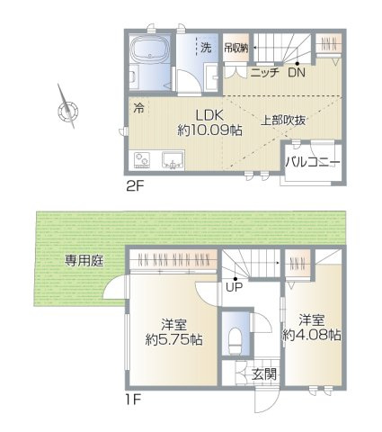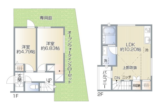 ◆新築!専用庭付きのテラスハウス!2階の天井が高く開放的な空間です。